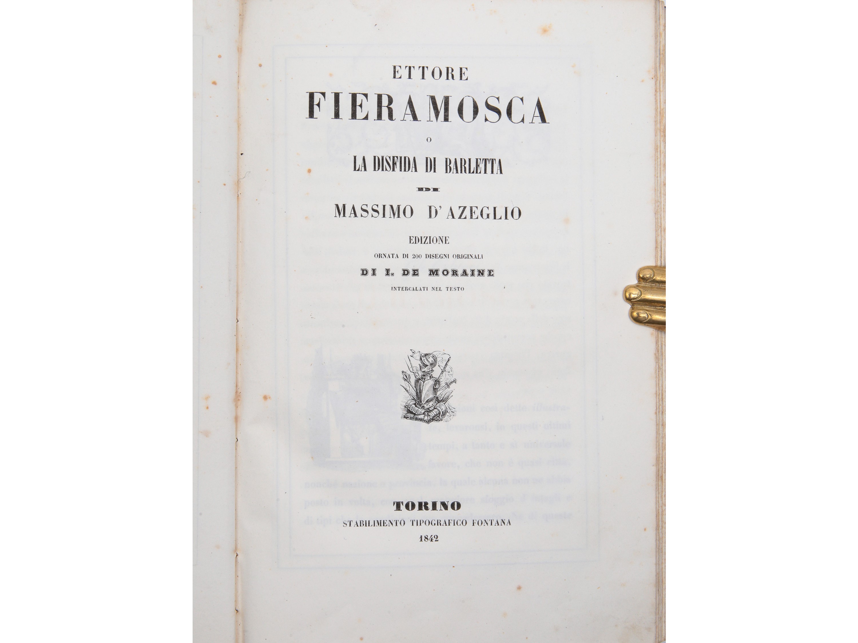 Torino: Stabilimento Tipografico Fontana, 1842. (260x170 mm). IX, 338 p. Edizione ornata di 200 disegni originali di I. Mariane integrati nel testo. Legatura in mz. pelle con titolo e fregi in oro al dorso; lievi difetti. Fioriture diffuse.