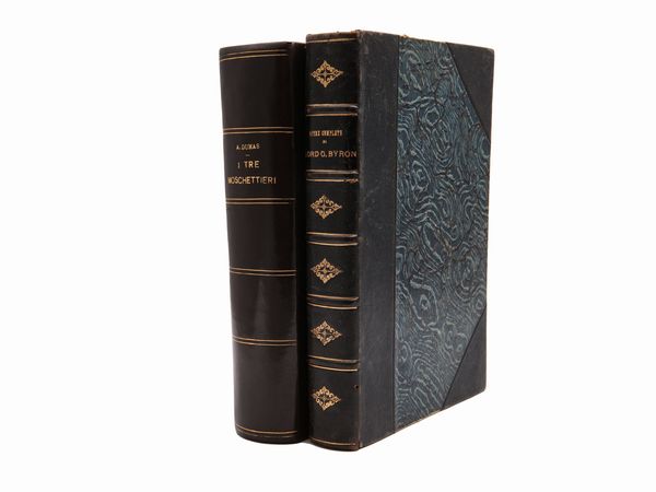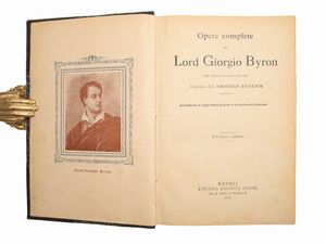 Milano: Rizzoli, 1935, 671 p. (260x190 mm). Senza frontespizio. Legatura in mz. pelle con titolo in oro al dorso. Rara edizione con le illustrazioni di Gustavino tutte a colori Si aggiunge: - Opere complete di Lord Byron, col ritratto dell'A. ricavato dal British Museum, Napoli: Bideri, 1900, 711 p. (260x170 mm). Legatura coeva in mz. pelle con fregi e titolo in oro al dorso. Fioriture e bruniture (2)