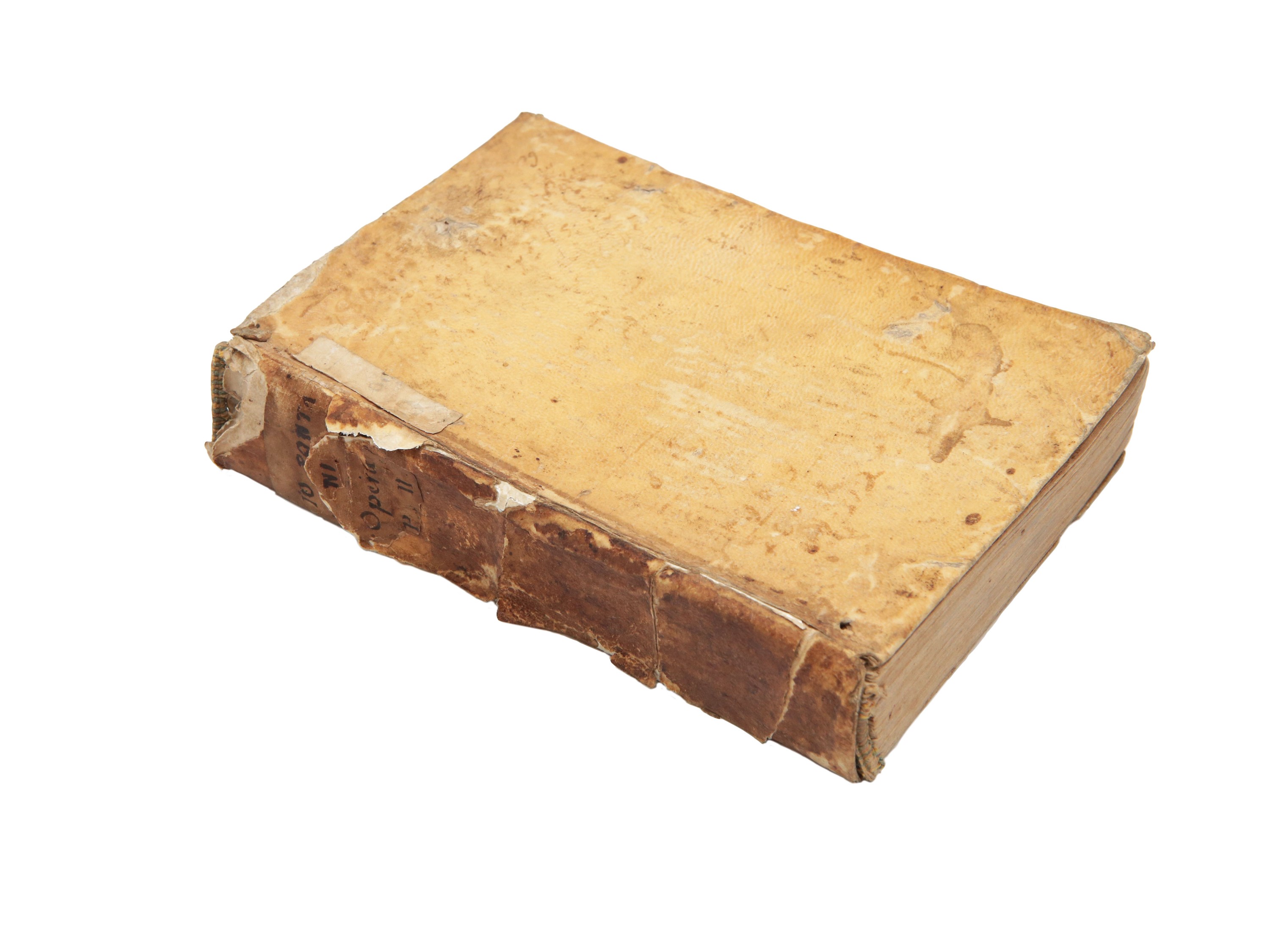 Legatura coeva in piena pergamena con titolo manoscritto su tassello al dorso, con difetti (mende, strappi, macchie) restauri. Gore d'acqua, fioriture, legatura allentata quasi totalmente staccata al morso posteriore; alcune c. con piccoli restauri