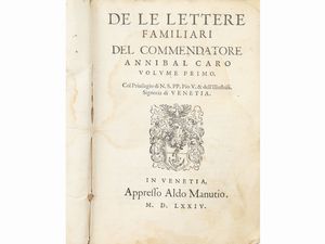 In Venetia: appresso Aldo Manutio, 1574-1575, 2 voll. in 1 vol. con frontespizi propri. In-4° (200x155 mm). [12], [..]