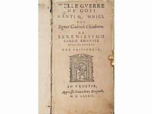 In Venetia: appresso Giouachino Brognolo, 1582. In-12° (145x80 mm). 108 c. Bianca c. A2. Iniziali, fregi e vignette [..]