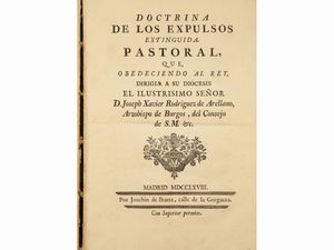 Madrid: por Joachin de Ibarra, 1768, 415 p. In-4° (255x185 mm) ...Pastoral, que obedeciendo al Rey, dirigia a [..]
