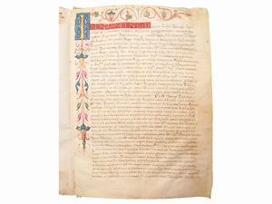 atto notarile cinquecentesco, manoscritto pergamenaceo, con bella miniatura iniziale, composto da 5 bifolio (300x225 [..]