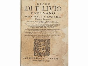 In Venetia: Appresso Domenico Farri, 1587. In-4° (200x145 mm). ...Diuisa in venti libri. Riscontrata con tutti [..]