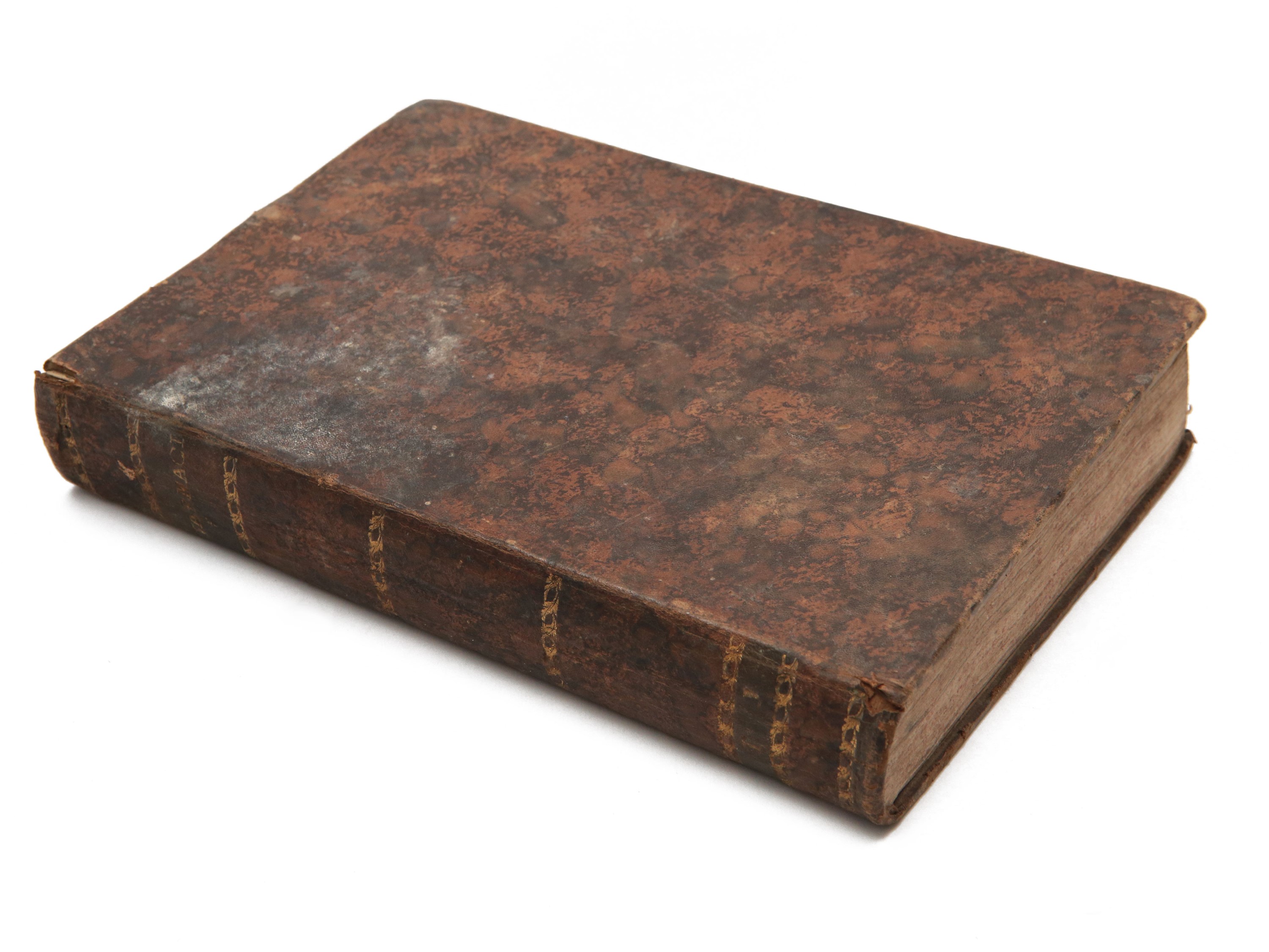 Legatura coeva in piena pelle con titolo in oro al dorso, con difetti, spellature, macchie. Segni di restauro, gore d'acqua, strappetti, lievi fioriture