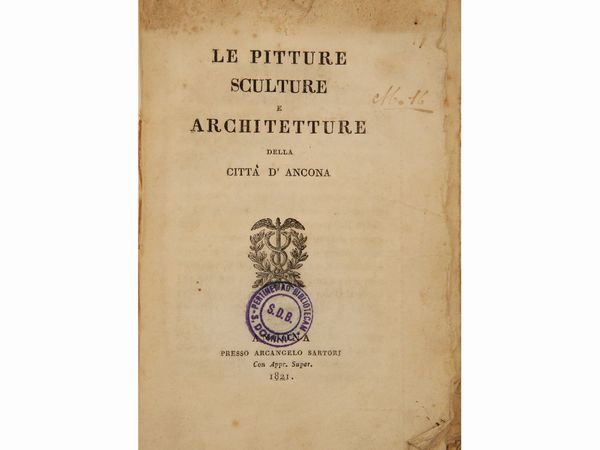 Ancona: presso Arcangelo Sartori, 1821, [4], 108 p., 1 (di 3) c. di tav. In-8° (160x110 mm).