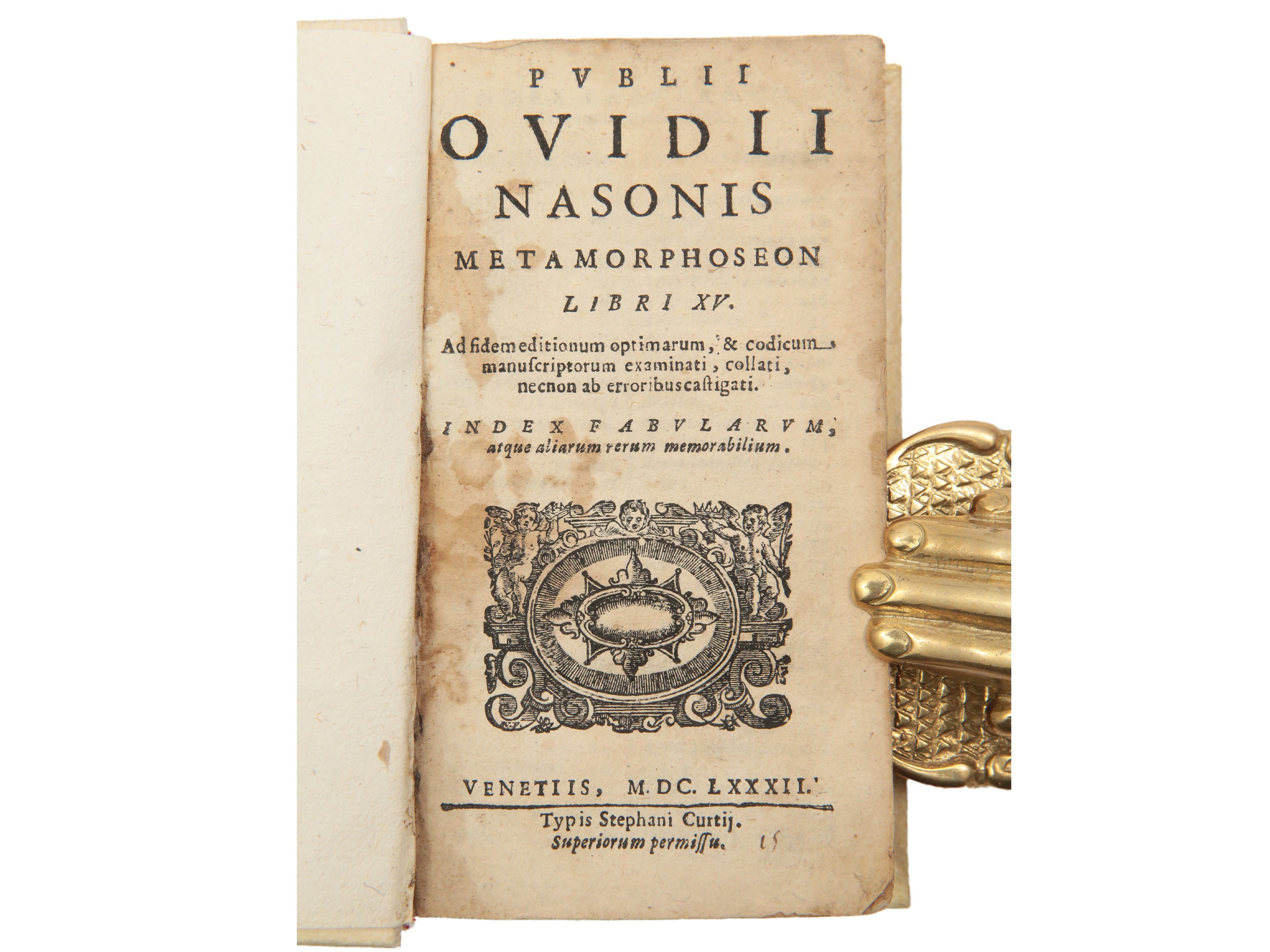 Venetiis: Typis Stephani Curtij, 1682, 360 p. In-12° (140x80 mm). ...ad fidem editionum optimarum, & codicum manuscriptorum examinati, collati necnon ab erroribus castigati. Index Fabularum, atque aliarum rerum memorabilium Legatura non coeva in piena pelle con titolo calligrafico al dorso. Tagli spruzzati, Qualche macchia. Seicentina in discreto stato di conservazione