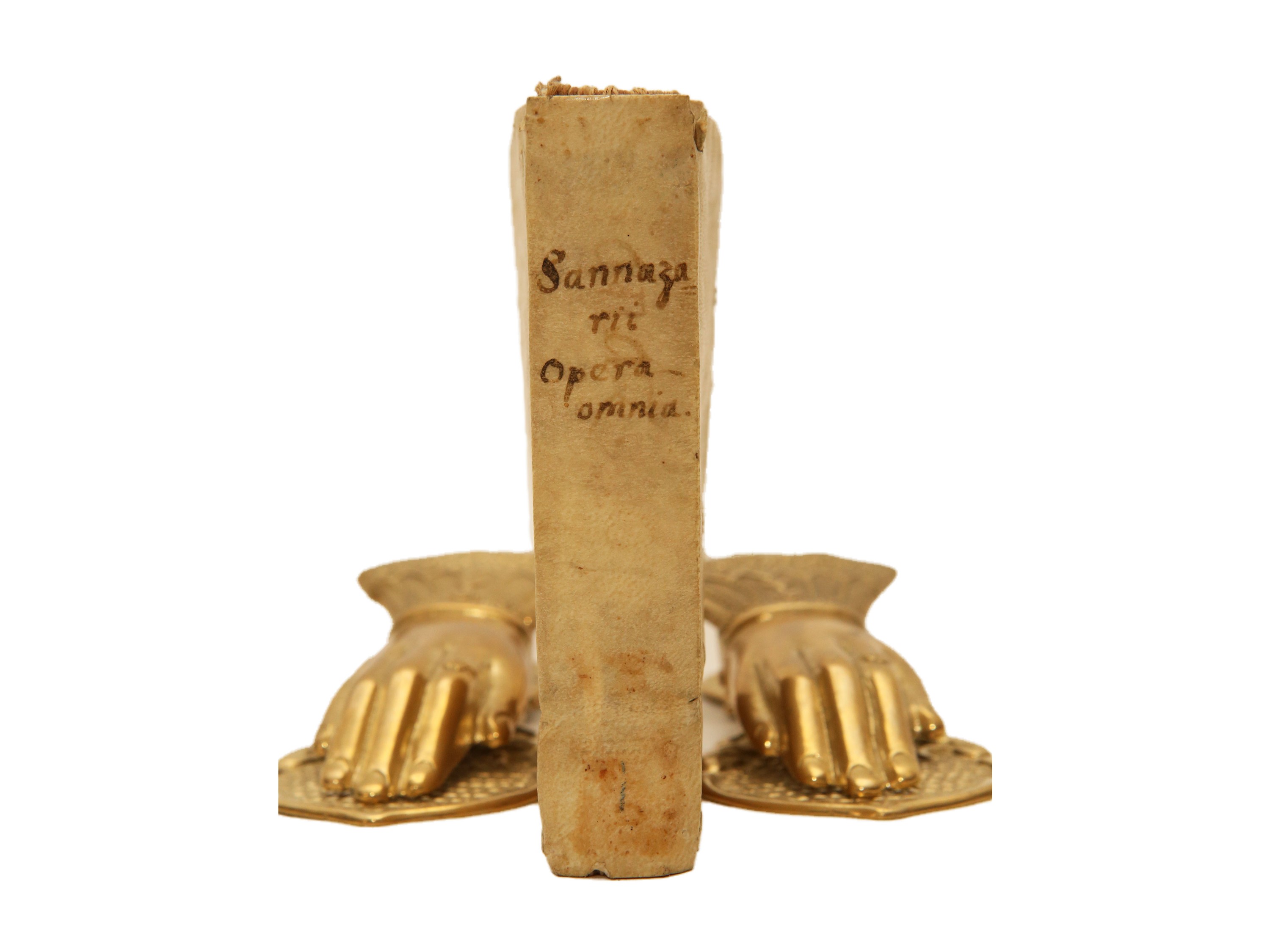 Romae: apud Iacobum Tornerium, 1590, 352 p. (120x85 mm). Quorum indicem sequens pagella continet. His adiecta sunt selecta Poémata, ex primo tomo. Illustrium Italorum Poetarum. Legatura coeva in piena pergamena con titolo calligrafico al dorso. Fori ai piatti di legacci caduti. Leggermente staccata ai risguardi. Frontespizio in rosso e nero entro bella cornice allegorica. Iniziali, fregi e finalini xilografici. Macchia di inchiostro al frontespizio, rare fioriture