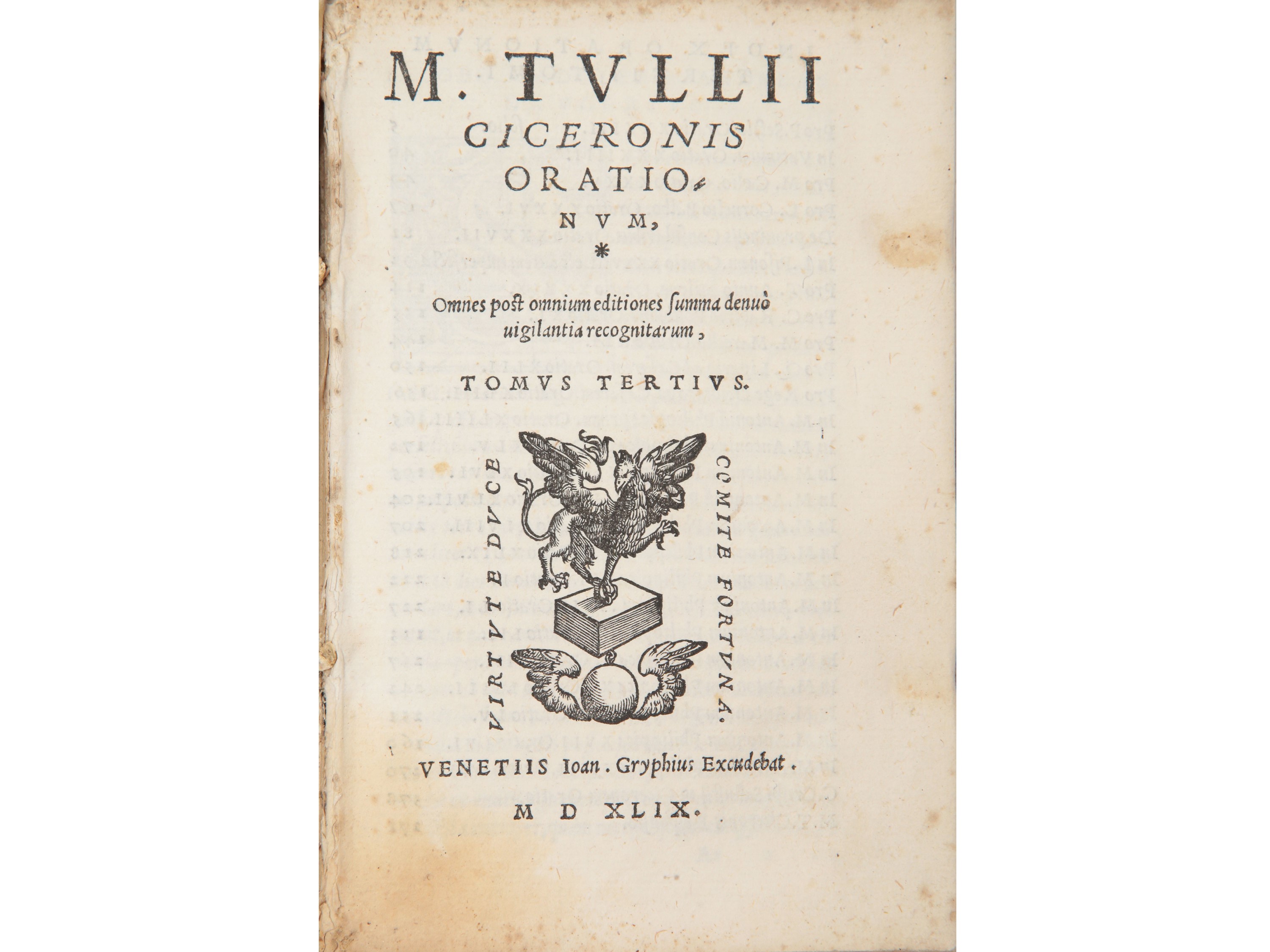 Venetiis: Ioan. Gryphius excudebat, 1549, tomus tertius (mancanti i tomi 1 e 2). In-8° (160x100 mm). 283, [1] c. Segnatura: 2A-3M8 3N4. Legatura coeva in piena pergamena con titolo calligrafico al dorso, bindelle parzialmente cadute. Difetti (macchie, cerniera quasi totalmente staccata dal piatto anteriore). Gore d'acqua, fioriture. Marca al frontespizio e in fine. Belle iniziali figurate
