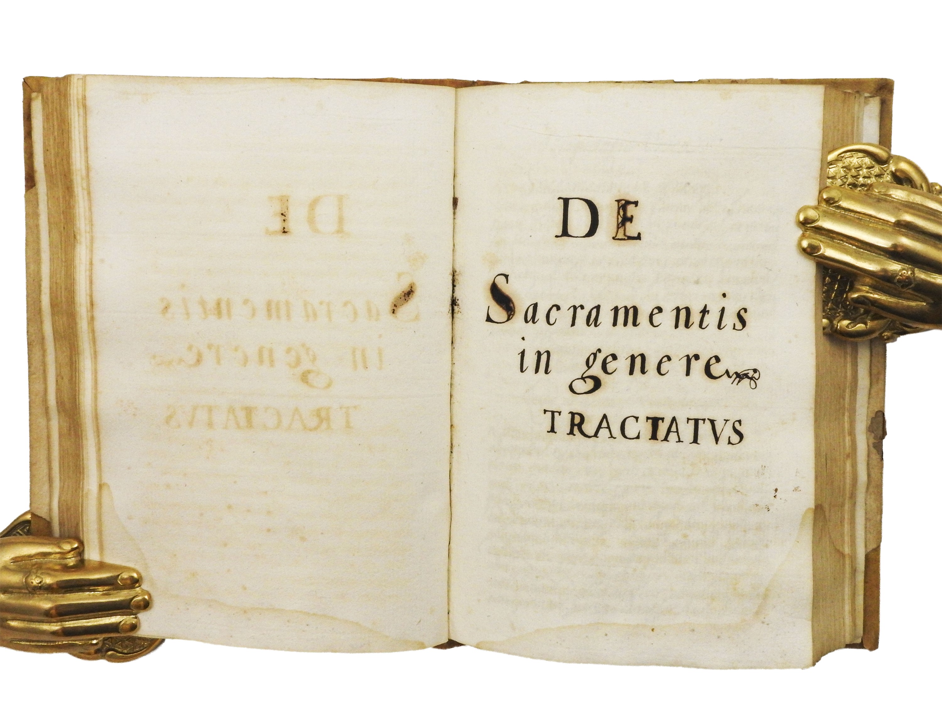 cm 19x13 due testi manoscritti a inchiostro bruno, in latino, 242 c. (alcune bianche). Probabile copia settecentesca di due trattati. In calce le date Die 28 Aprilis 1328 e die 27 Januarij anni 1329, anni corretti con cassatura e abrasione. Legatura in mz. pergamena con titolo manoscritto al piatto, con difetti. Gore d'acqua alle c. finali, piccole macchie