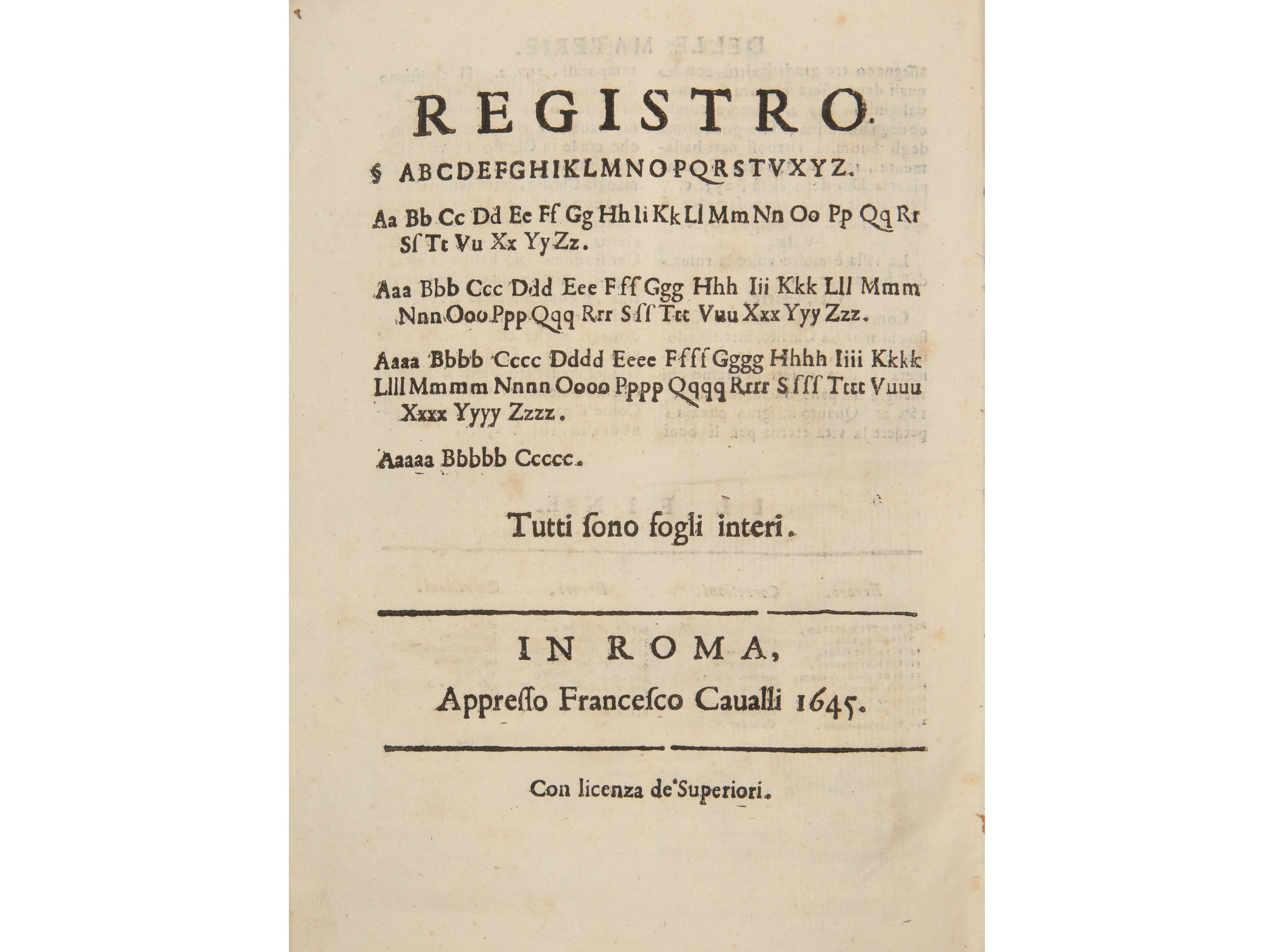 In Roma: Appresso Francesco Cavalli, 1646 (al colophon: In Roma: Appresso Francesco Cavalli, 1645). ...nostro cauata da gli Euangelisti e da quello che ne scriuono i sacri Dottori [...] da Marsilio Honorati da Viterbo prete della Congregatione dell'Oratorio di Roma. In-4° (220x165 mm). [8], 680, [80] p. Segnatura: [par.]4 A-5C4. Bel frontespizio calcografico in cornice architettonica. Iniziali figurate e fregi xilografici. Legatura in piena pergamena con tassello cartaceo al dorso a coprire titolo manoscritto. Qualche piccola macchia. Fioriture, zone brunite; strappetto a p. 445 e a p. 621