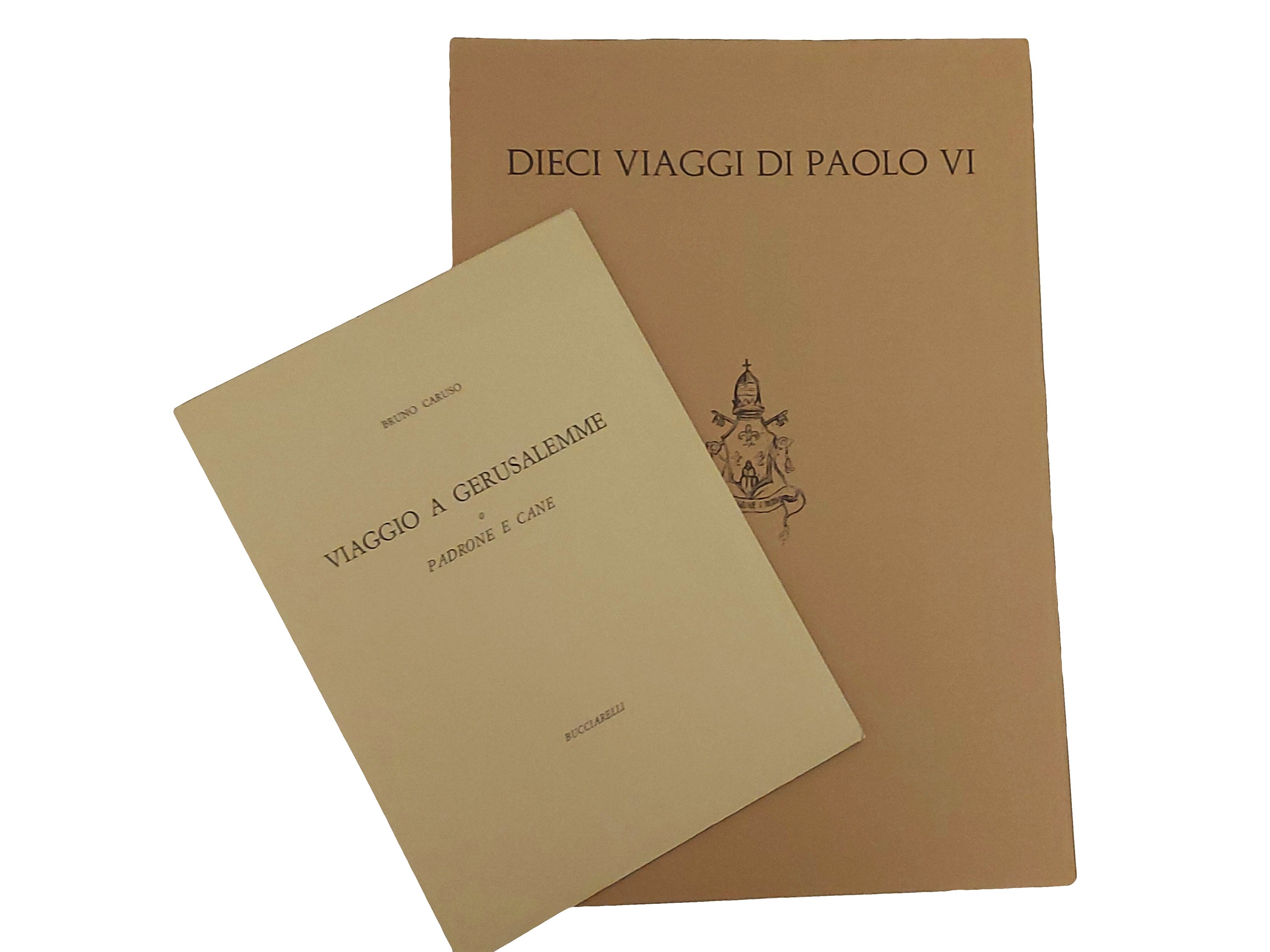 - Bruno Caruso, Viaggio a Gerusalemme o padrone e cane, Bucciarelli, 1974, 23 p. (360x260 mm). Con una acquaforte originale (235x180 mm) numerata e firmata, di Bruno Caruso. Es. n. 117/150 su carta filigranata “Umbria” delle cartiere di Fabriano (2)