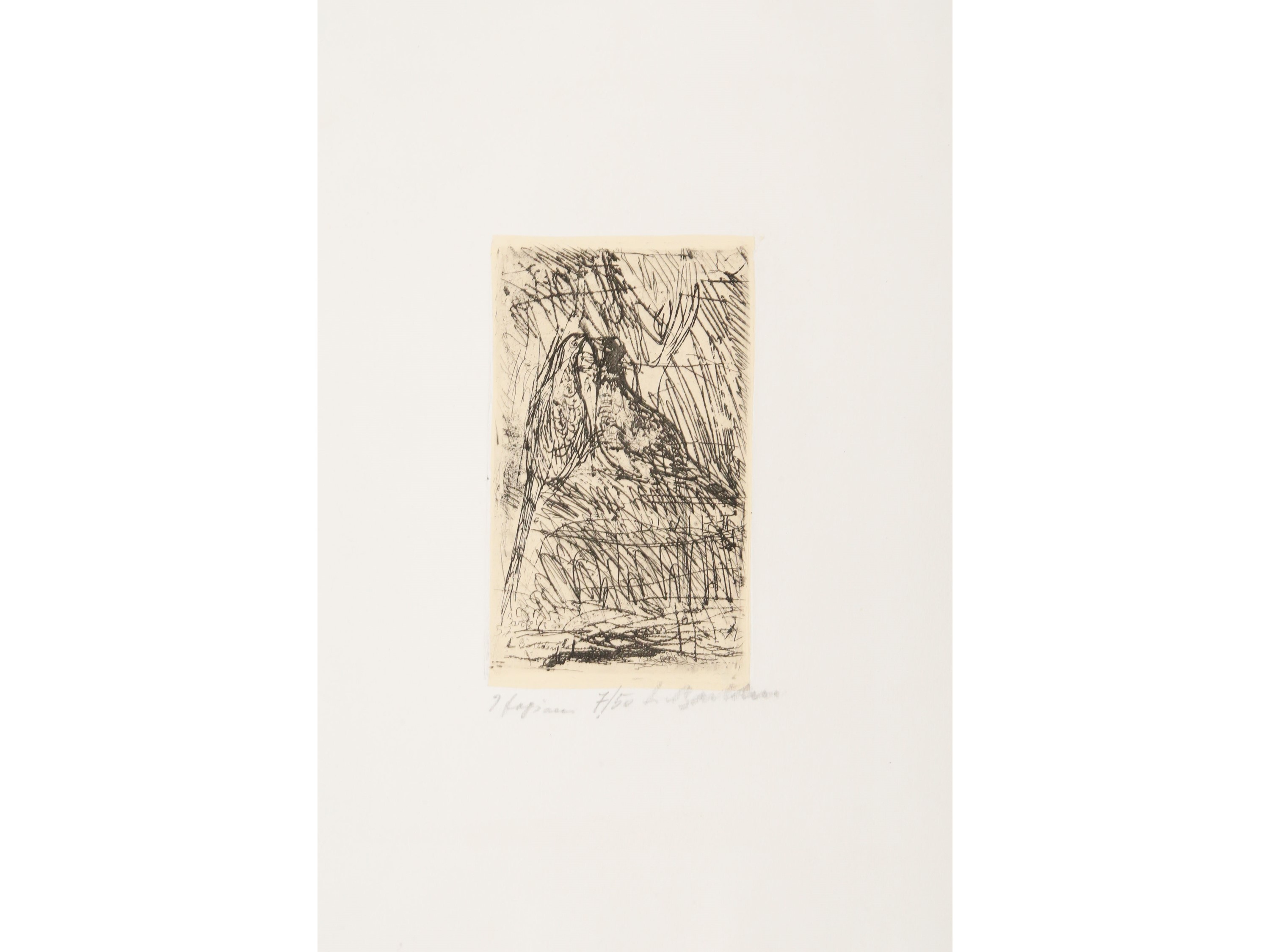 acquaforte parzialmente applicata a cartoncino, es 7/50, firmata e titolata, firmata e datata 57 in lastra