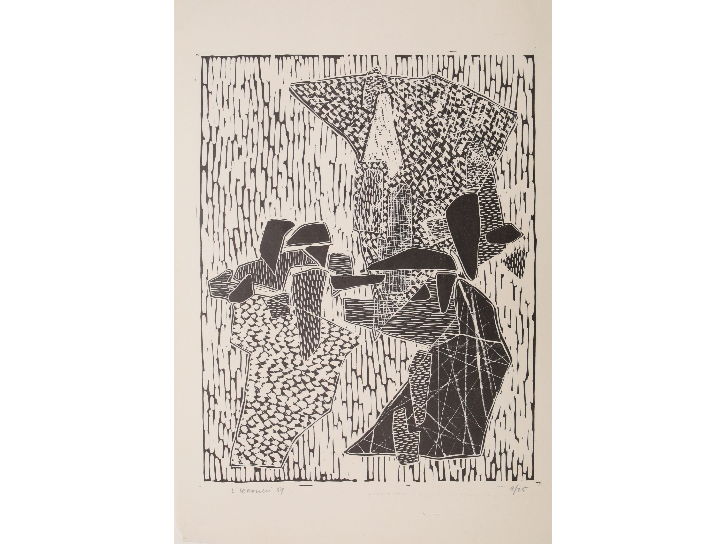 cartella contenente serie di sei incisioni su carta giapponese, es 9/25, firmate e datate, alcuni difetti