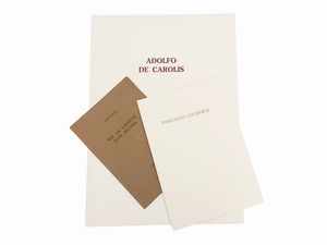 contiene: - Adolfo De Carolis, La xilografia, Bucciarelli, 1974, 51 p. (360x26 mm). Con 8 xilografie stampate [..]