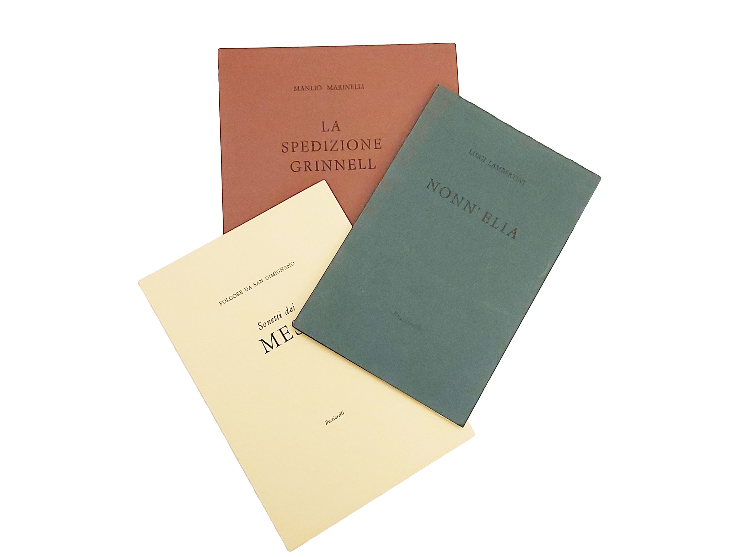 - Manlio Marinelli, La spedizione Grinnell, Bucciarelli, 1967, 39 p. (280x215 mm). Con tre acqueforti originali (150x110 mm) numerate e firmate, di Edgardo Travaglini. Es. n. 7/150 su carta a mano Fabriano (3)