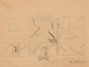 Matita su carta Dimensioni: cm 22 x 35 Firma in basso a sinistra Provenienza Casa Balla, Roma (Agenda n.1239 [..]