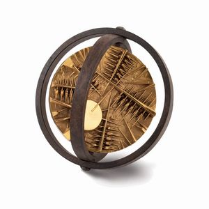 Scultura in bronzo dorato e ferro Diametro cm 13, disco cm 10 Multiplo realizzato a conio dalla Stefano Johnson [..]