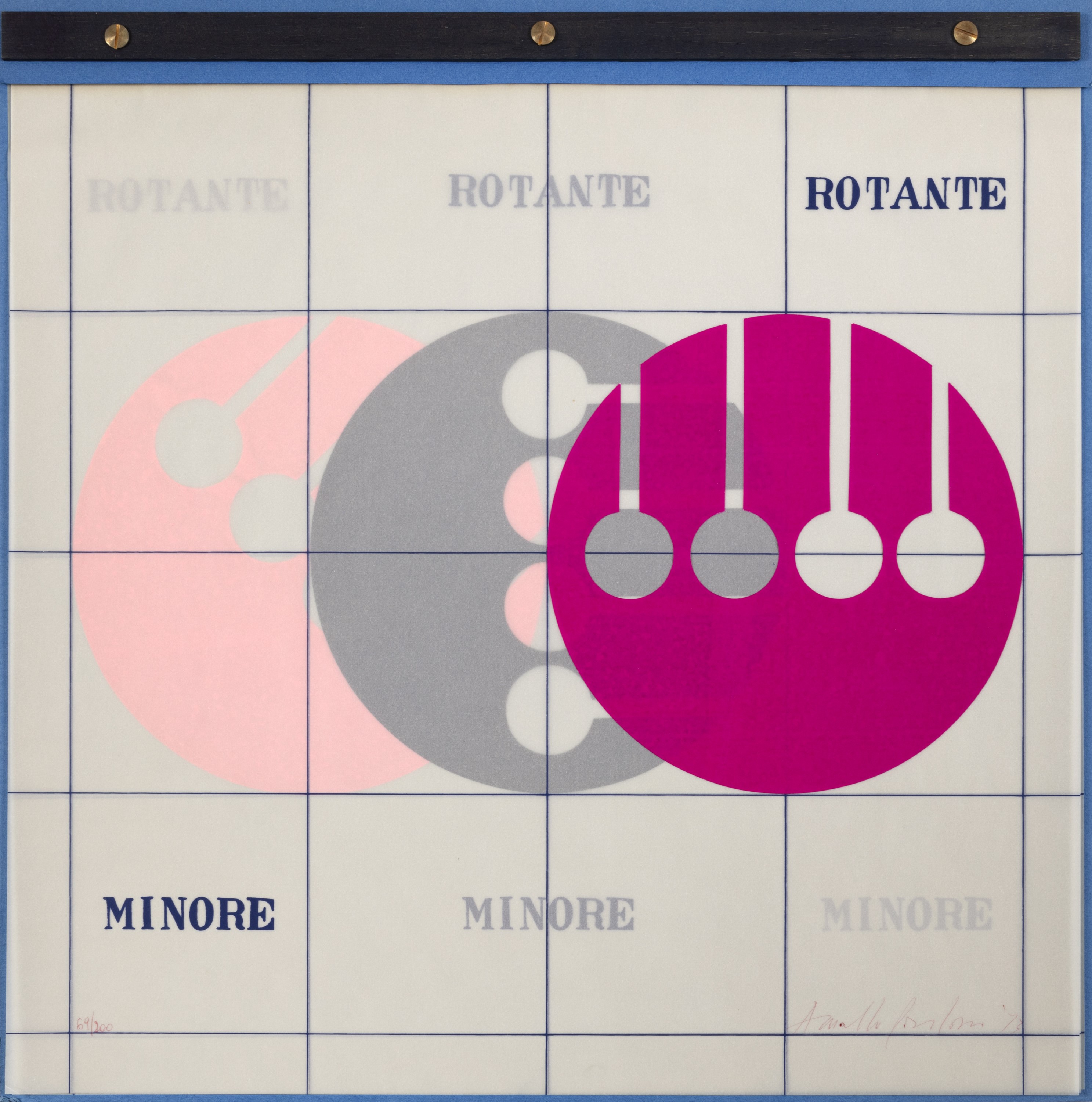 serigrafia a colori su tre fogli di carta da lucido, es. 69/200, cm 46 x 46 (misure dell'insieme), (sc)