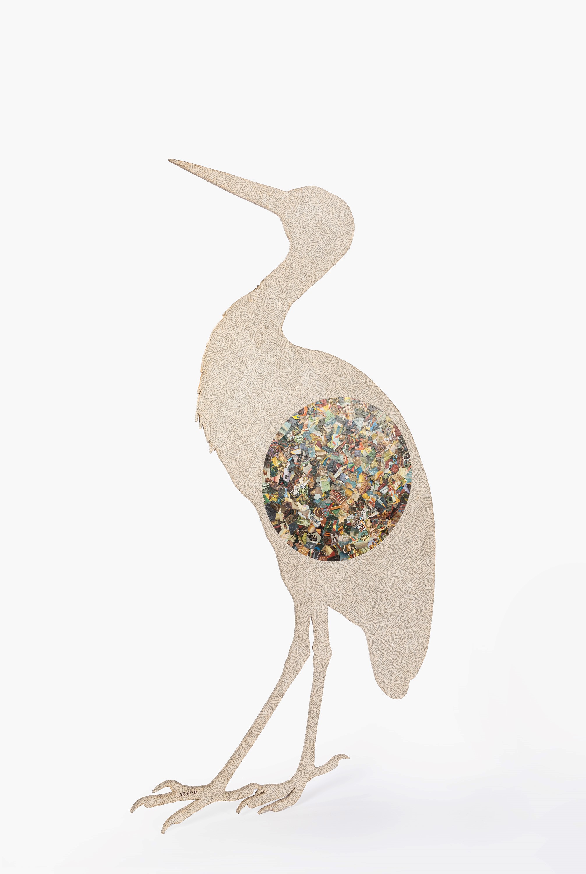 tecnica mista e collage su tavola sagomata, cm 147 x 70 ca
