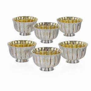 3x10x6 cm. Italia, XX Sec. orafo Messulam, Milano, decorati con diversi motivi di frutti e motivi vegetali, peso [..]