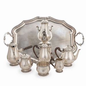 45x73x46 cm. Francia, primi anni del 900 orafo J. Emile Puiforcat, corpi sbalzati con profili baccellati, manici [..]
