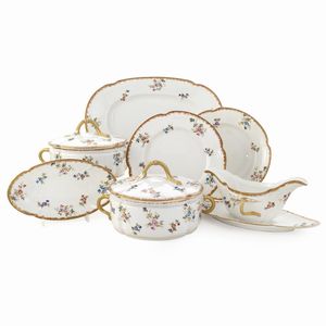 insalatiera 9,5x26 cm. Francia, XIX Sec. in porcellana policroma decorata con motivi floreali su fondo bianco [..]