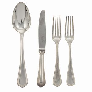 . Italia, anni 30/40 parte di servizio di posate in metallo argentato, marchio della produzione, composto da [..]