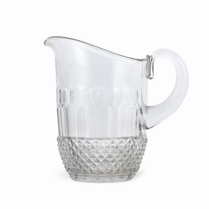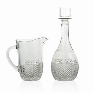 h. 25-22,5 cm. Francia, XX Sec. in cristallo trasparente composto da 6 flutes decorati in policromia e una caraffa [..]