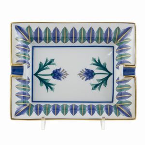 d. 19 - h. 22,5 cm. Italia, XX Sec. composto da un piatto Richard Ginori manifattura di Doccia e una bottiglia [..]