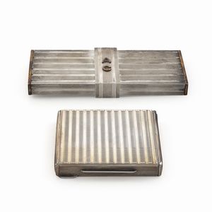 peso lordo complessivo 460 gr. Italia, XX Sec. - Trousse in argento corpo inciso a due scomparti, 1,8x15,3x6,5 [..]