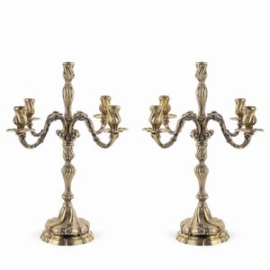 Coppia di candelabri a cinque luci in argento stile Luigi XV