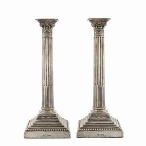 h. 25,5 cm. Sheffield, 1905 orafo Thomas A. Scott, base squadrata con stelo tornito, peso lordo complessivo 924 [..]