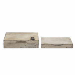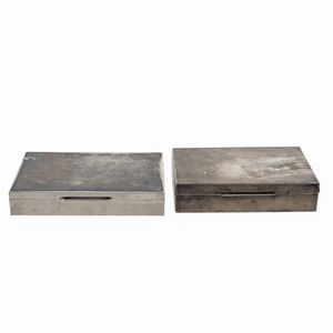 Due scatole rettangolari rispettivamente in argento e in metallo
