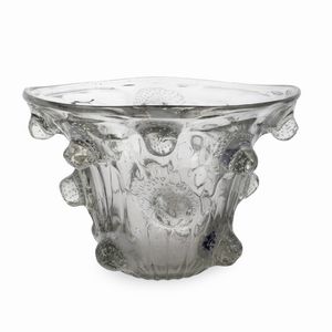 27x39x37 cm. Murano, XX Sec. in vetro soffiato pesante con applicazioni bugnate decorate a bolle sommerse