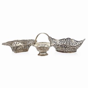 peso complessivo 430 gr. XVIII-XIX Sec. - cestino inciso e perlinato, Londra 1782, orafo Hennell, h. 14 cm. [..]