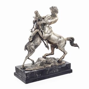 35x37x13 cm. Napoli, inizio XX Sec. raffigurante Il Centauro che uccide il Cervo, poggiante su base rettangolare [..]