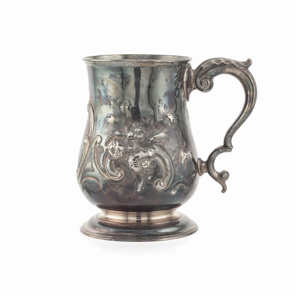 Londra, 1871 base circolare, corpo cesellato con motivi vegetali e floreali, manico sagomato, peso 280 gr.