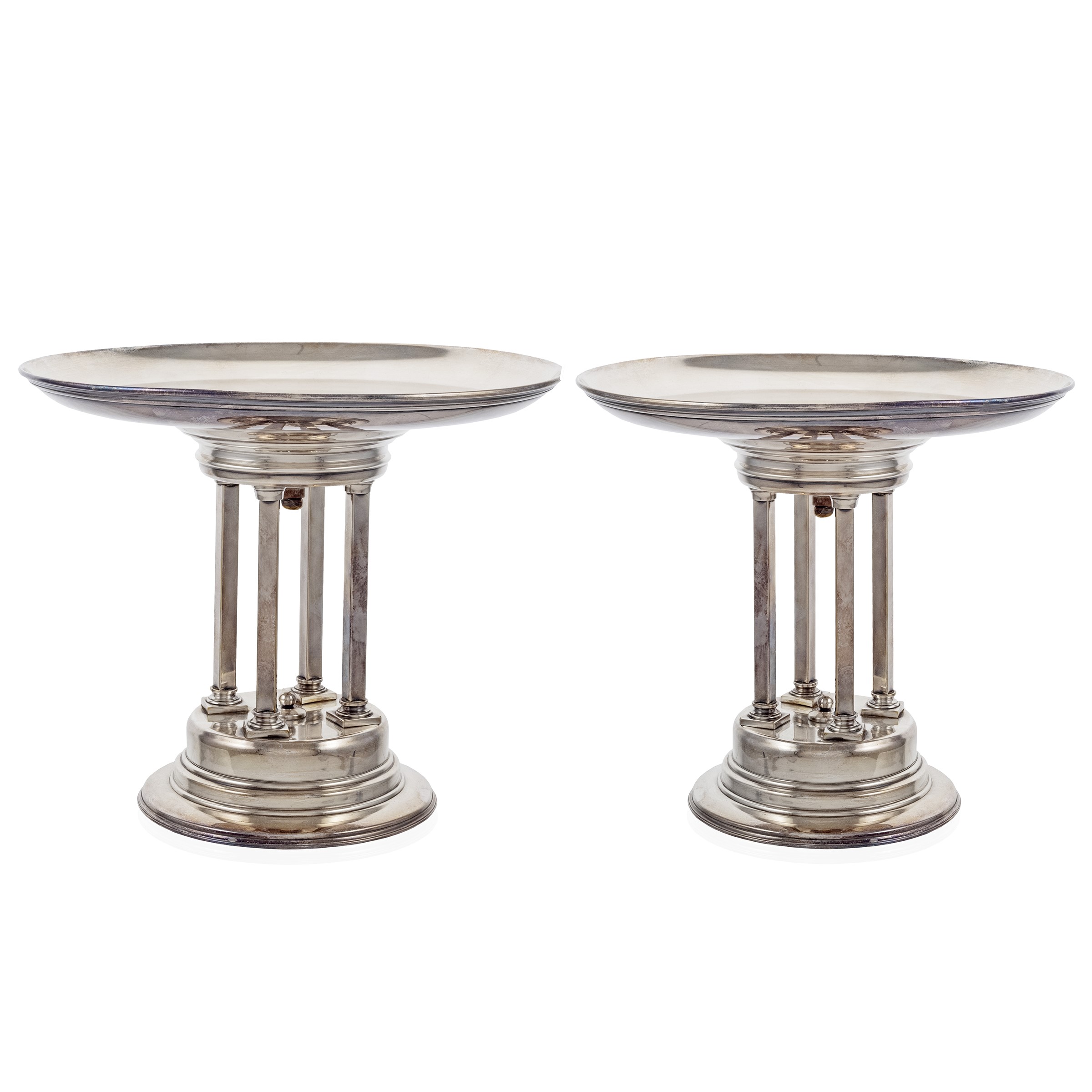 Coppia di alzate centrotavola in metallo argentato