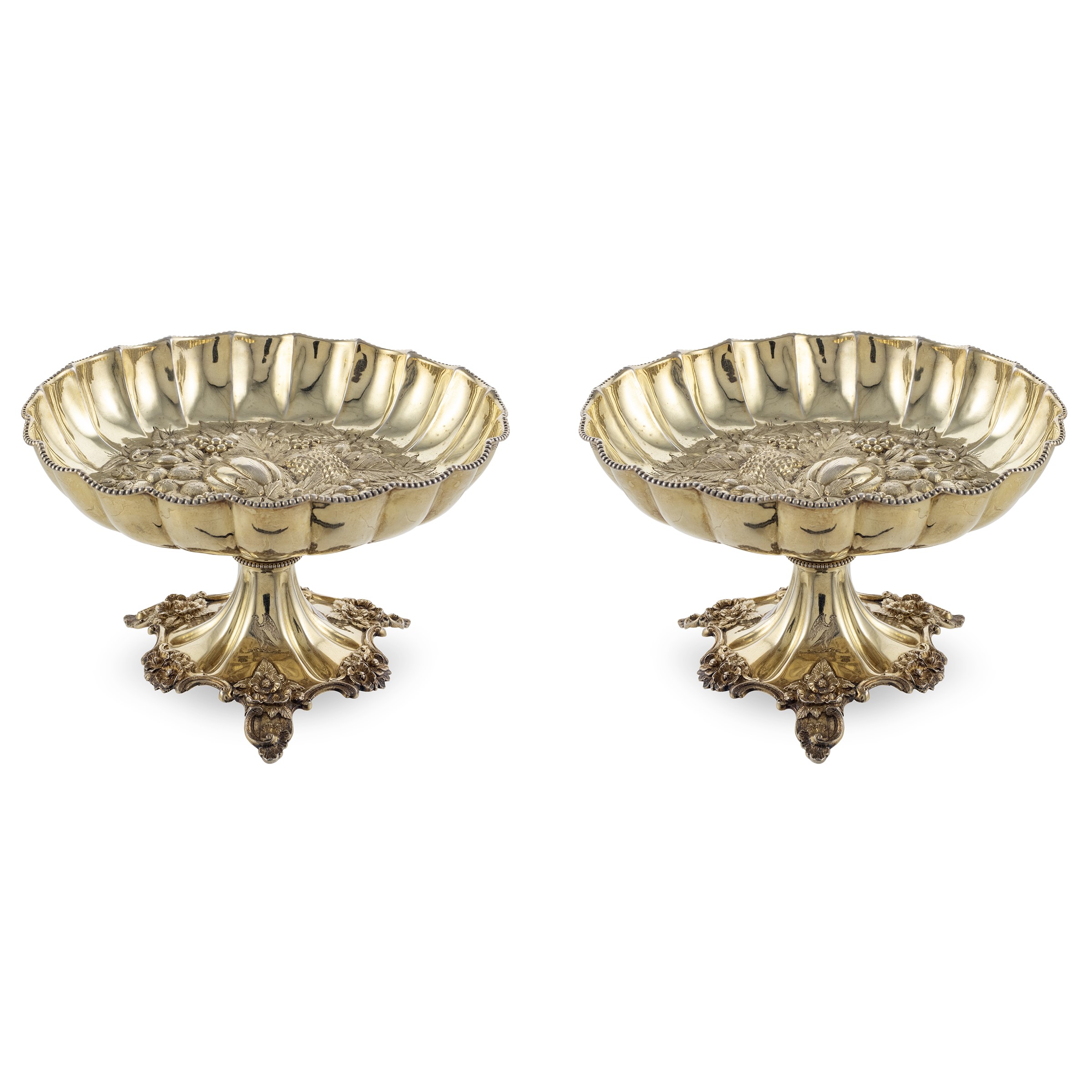 Coppia di alzate in argento dorato
