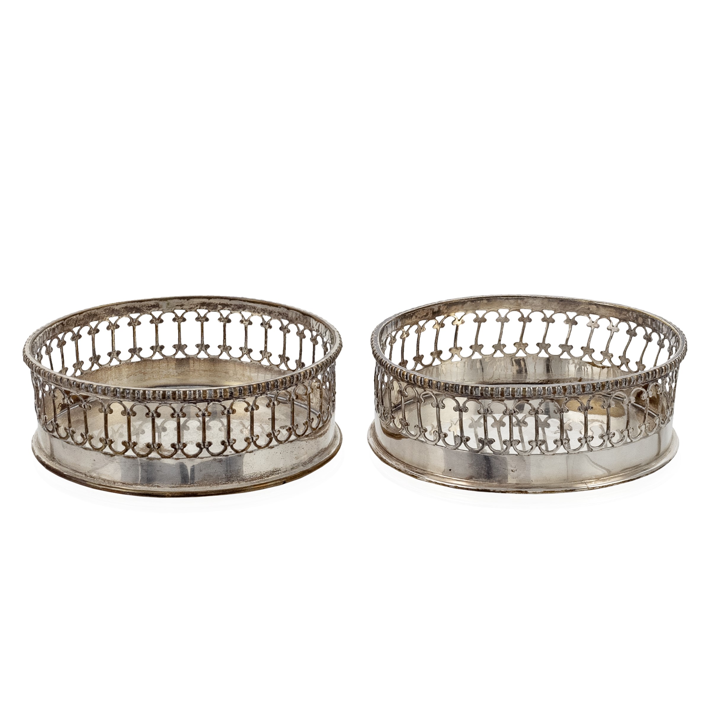 Coppia di sottobottiglia in metallo argentato