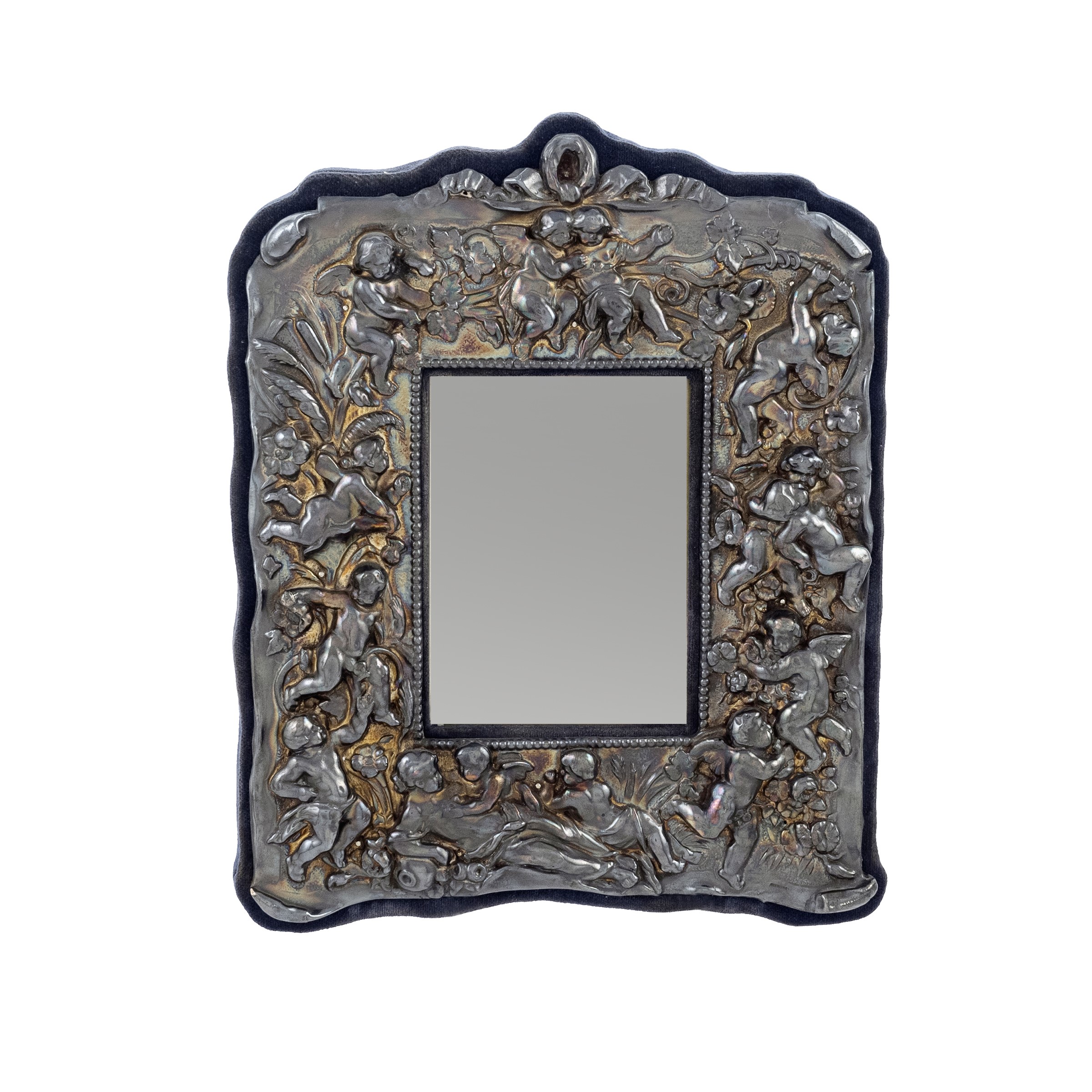 Italia, XX Sec. sbalzata e cesellata con motivi di putti, struttura in legno e rivestita in tessuto