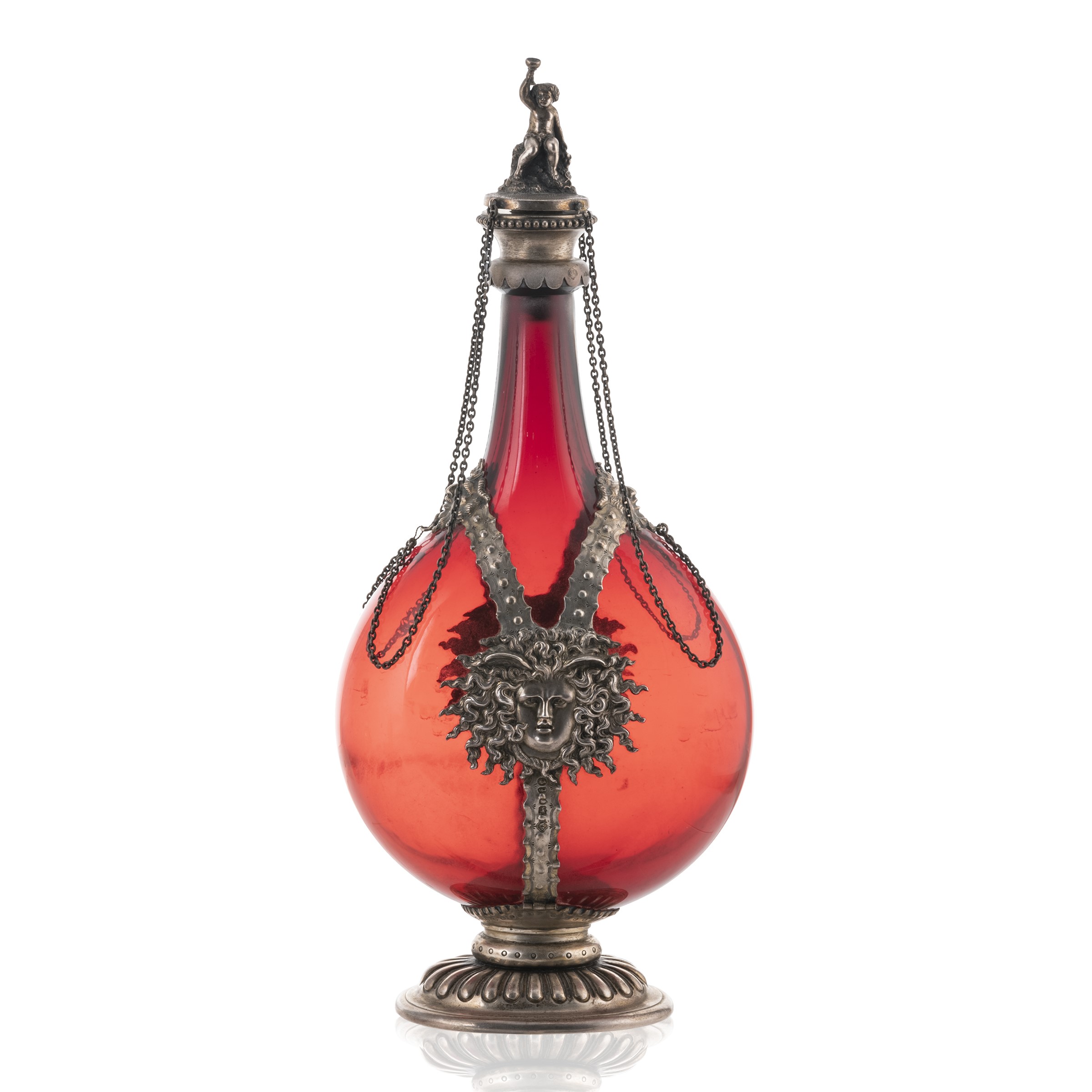 Londra 1861 orafo George Angell, corpo in vetro rosso con montatura in argento cesellato con motivi di mascheroni,