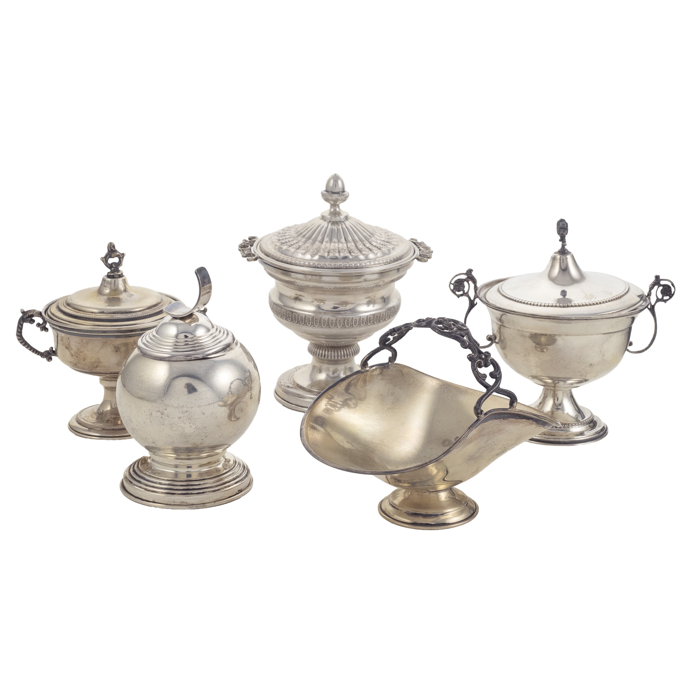 Italia, XX Sec. - quattro zuccheriere in argento di fogge e misure diverse