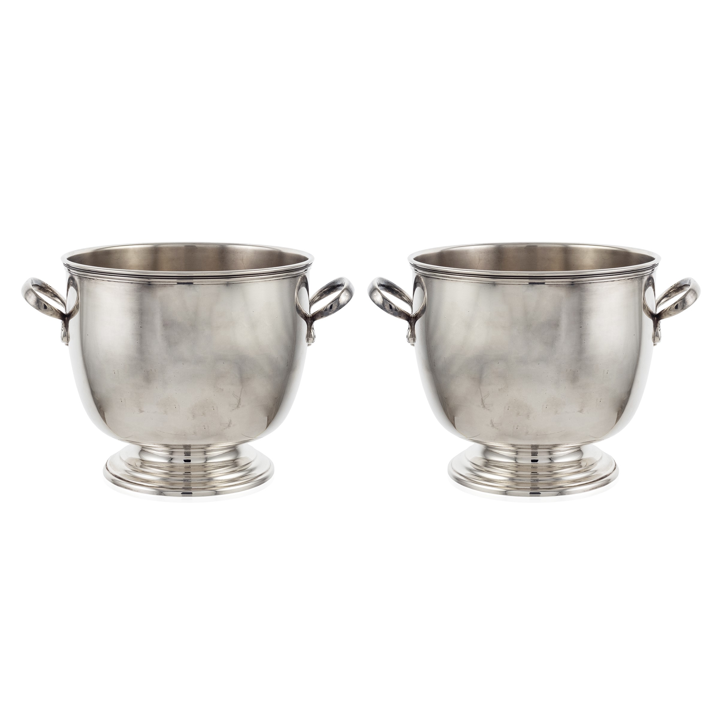 Sambonet, coppia di secchielli portabottiglia in ottone argentato