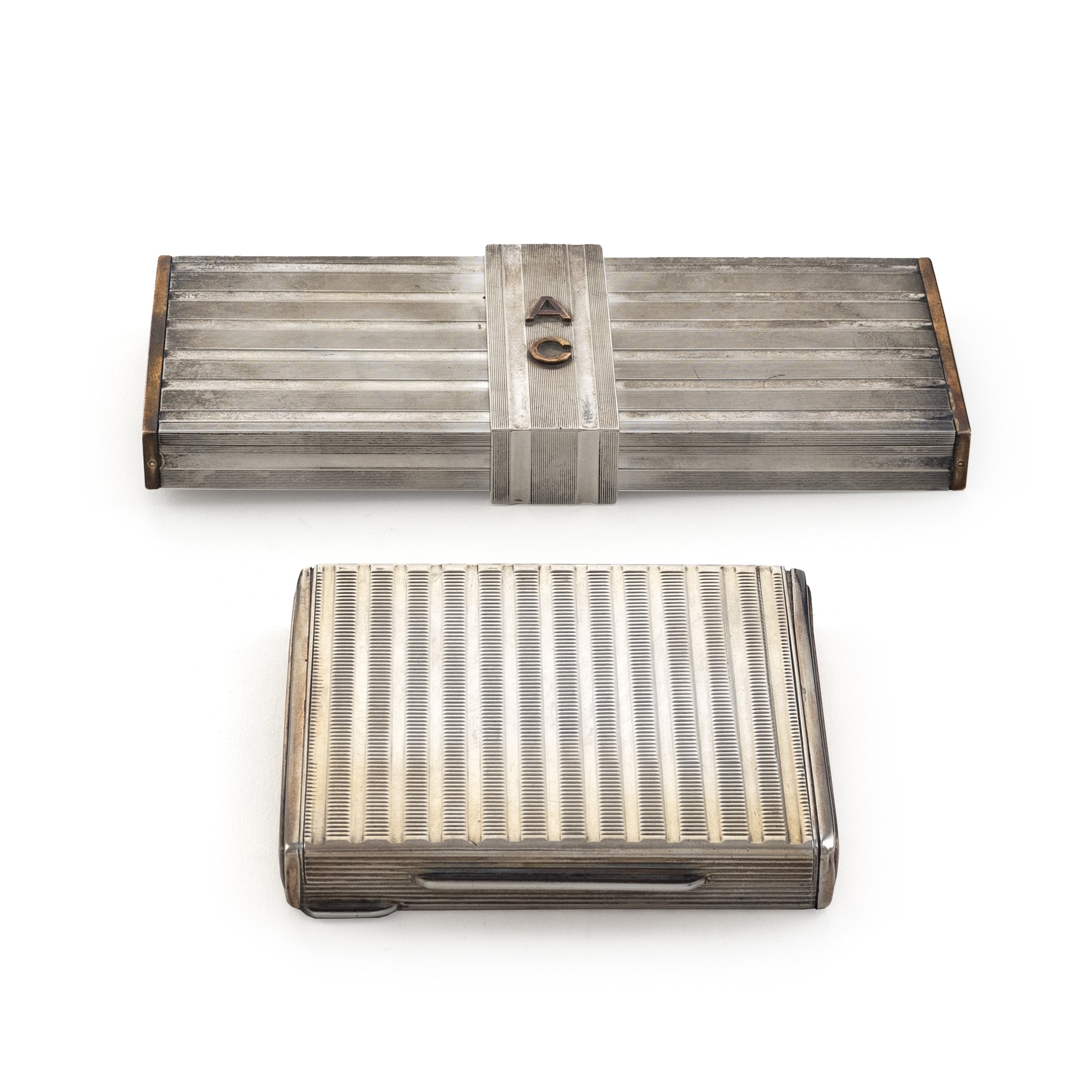 - Portacipria in argento, corpo inciso e scanalato, 1,3x9,5x8 cm.