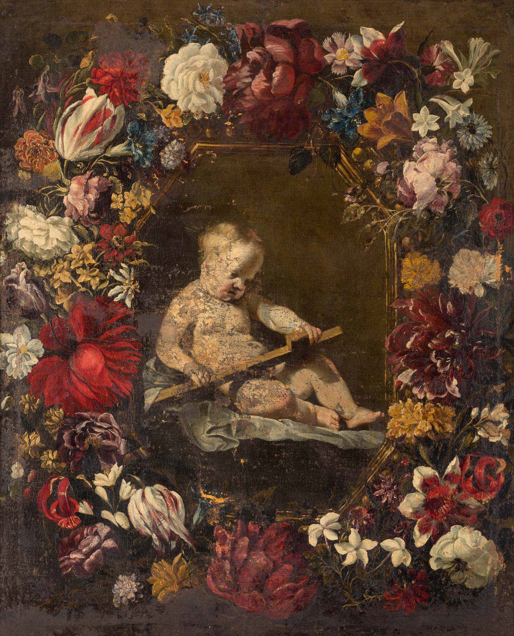 Artista fiammingo attivo a Roma nel XVII secolo Gesù Bambino entro ghirlanda di [..]