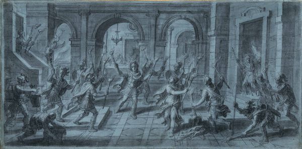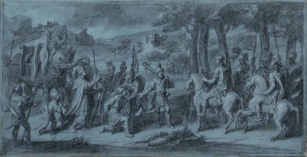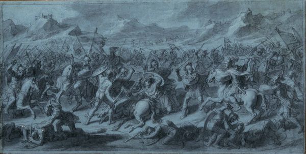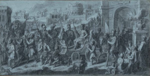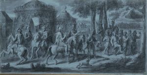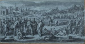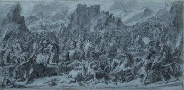 matita nera e bianca su carta preparata azzurra, da mm 253x513 a mm 266x516