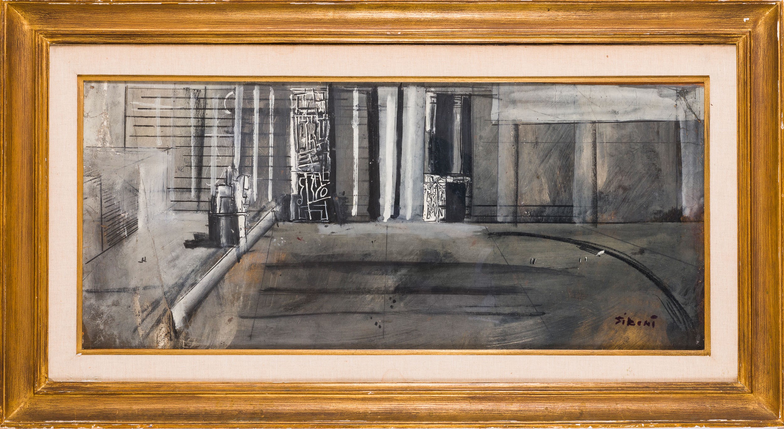 tempera, matita grassa e matita su carta applicata su masonite, Largh. 82 - Alt. 36 Cm