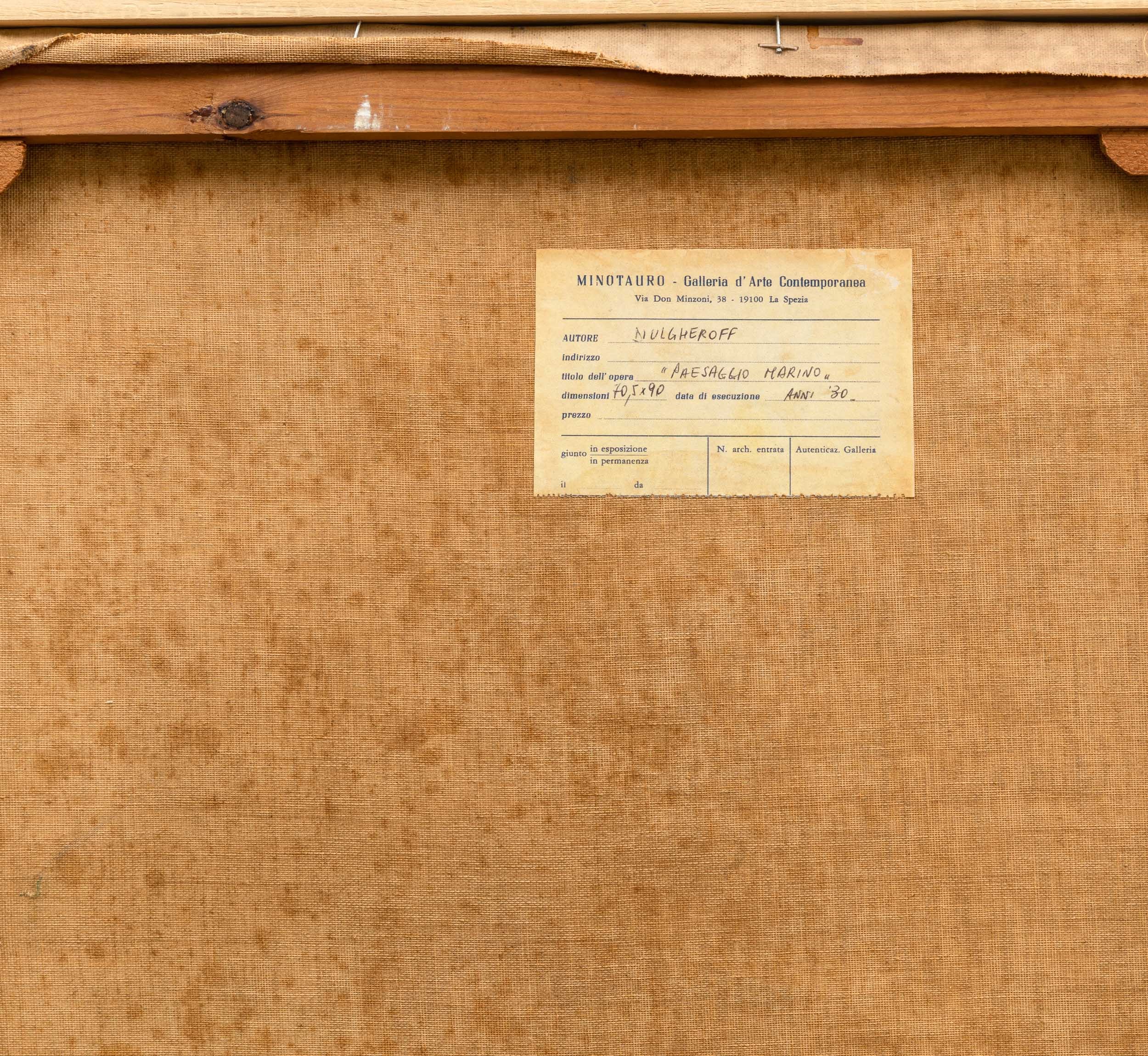 Etichetta al retro della Galleria Il Minotauro, La Spezia